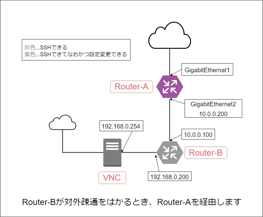 そのため、Router-Bから対外疎通がとれるようにしたいと考えています。
